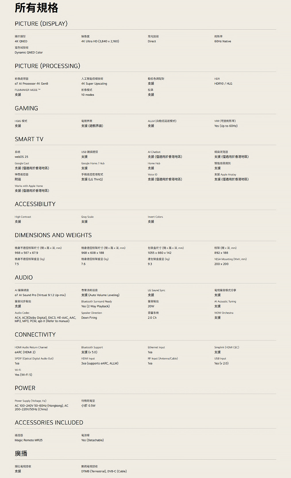 機身尺寸:不連座檯架: 968 x 567 x 67.9mm, 連座檯架: 968 x 608 x 188mm