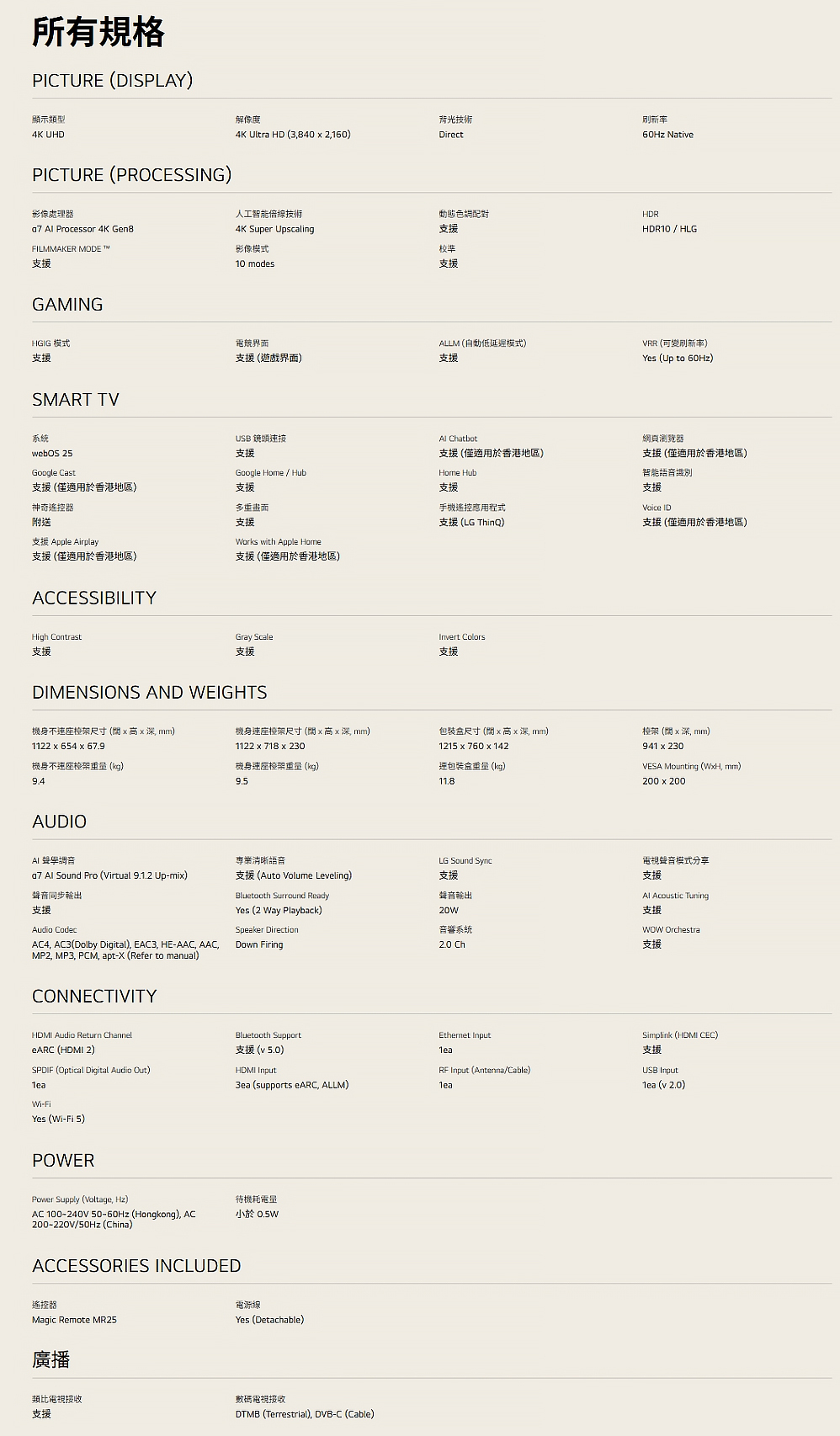電視訊號接收制式:數碼 (DTMB, DVB-C) /模擬