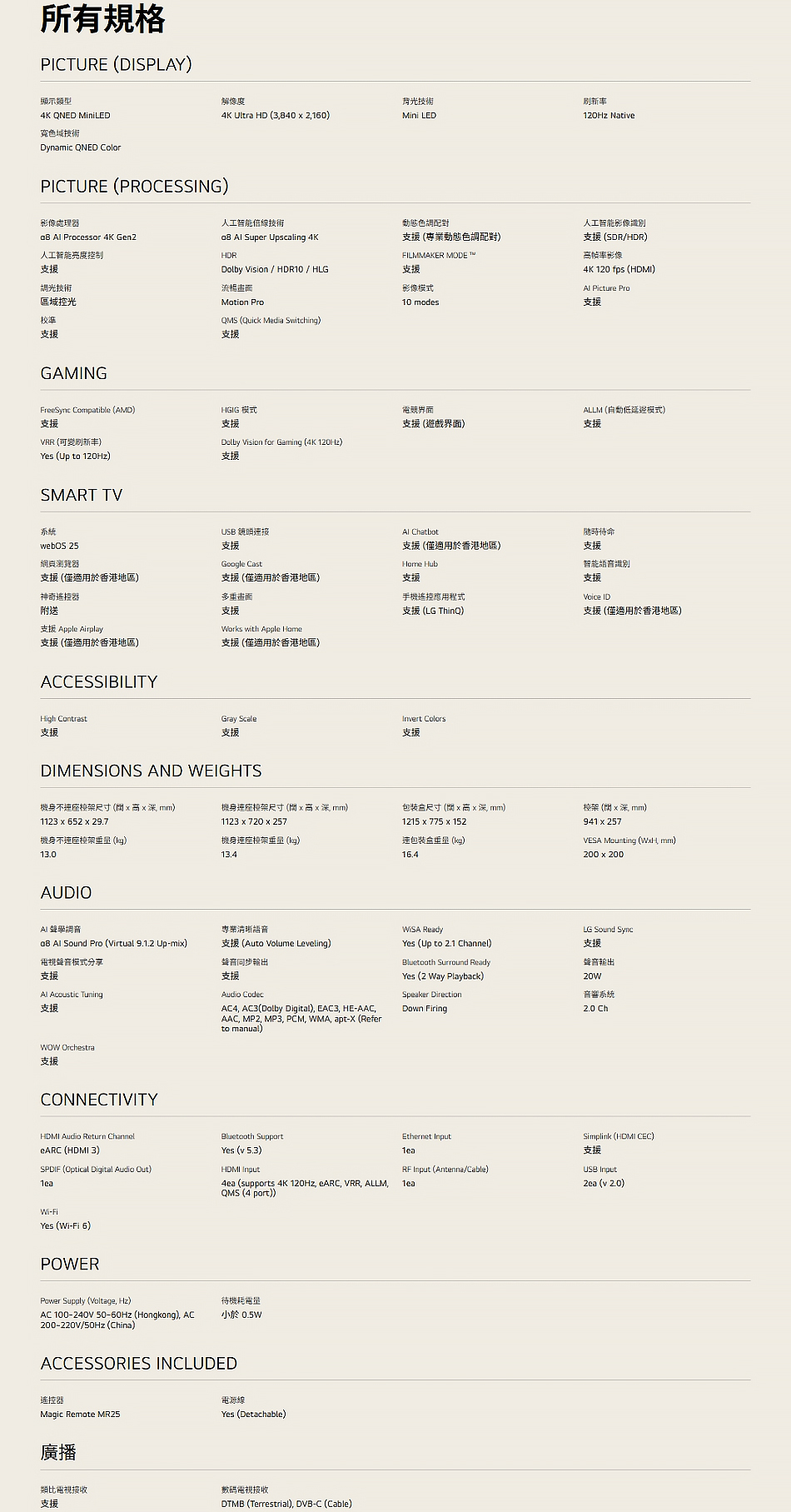 電視訊號接收制式:數碼/模擬