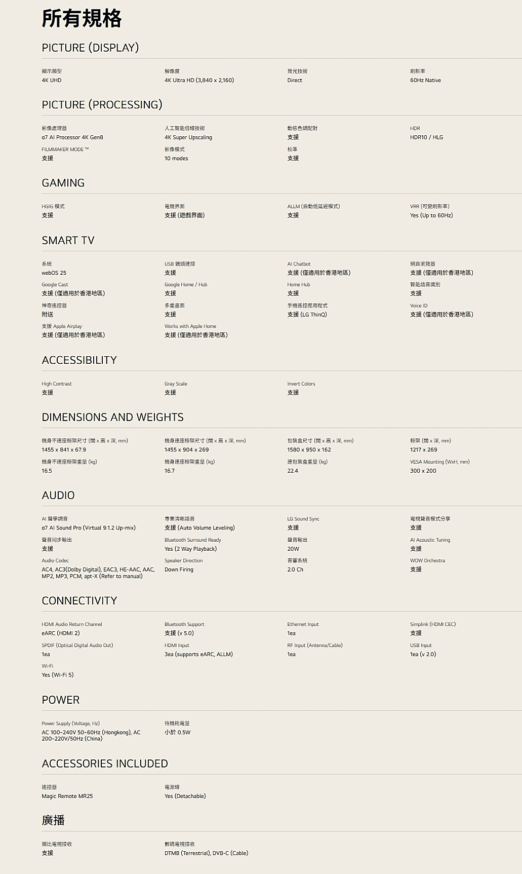電視訊號接收制式:數碼 (DTMB, DVB-C) /模擬