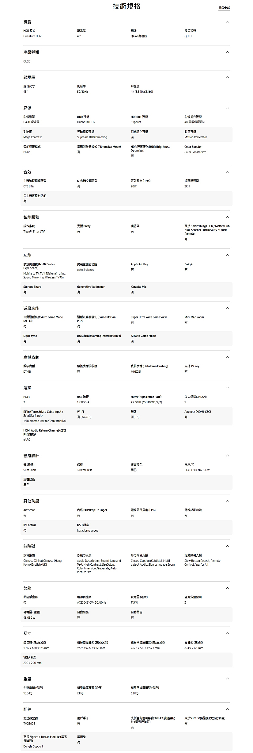 作業系統:Tizen Smart TV