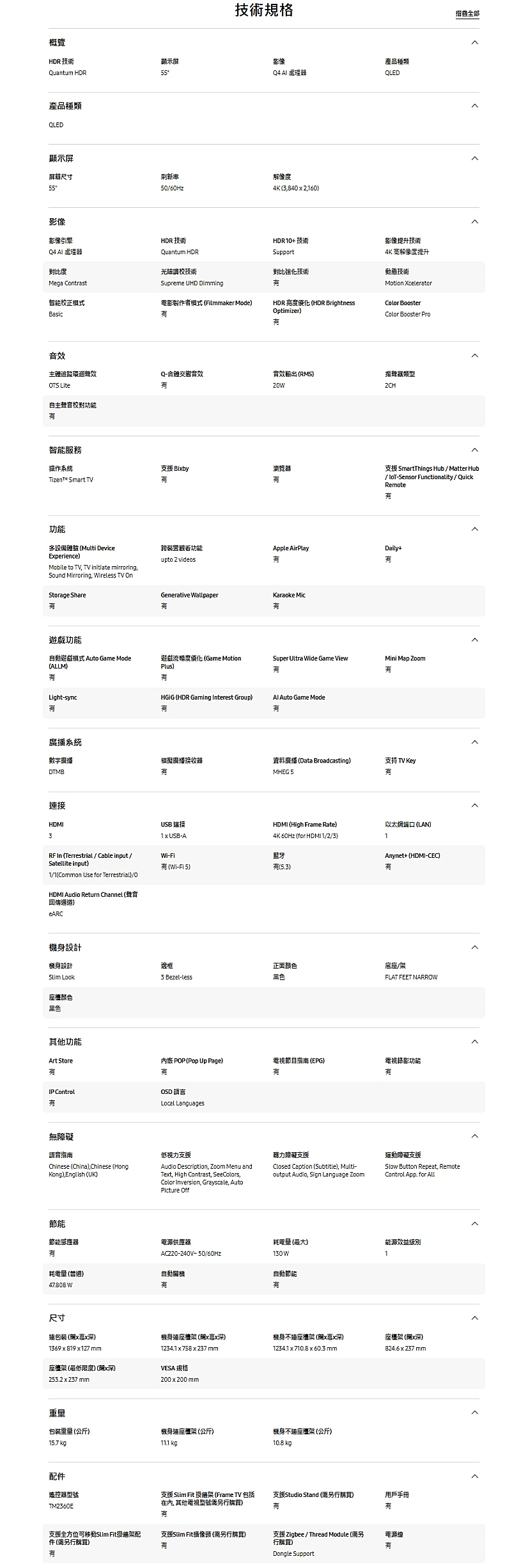 作業系統:Tizen Smart TV