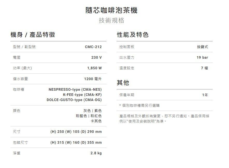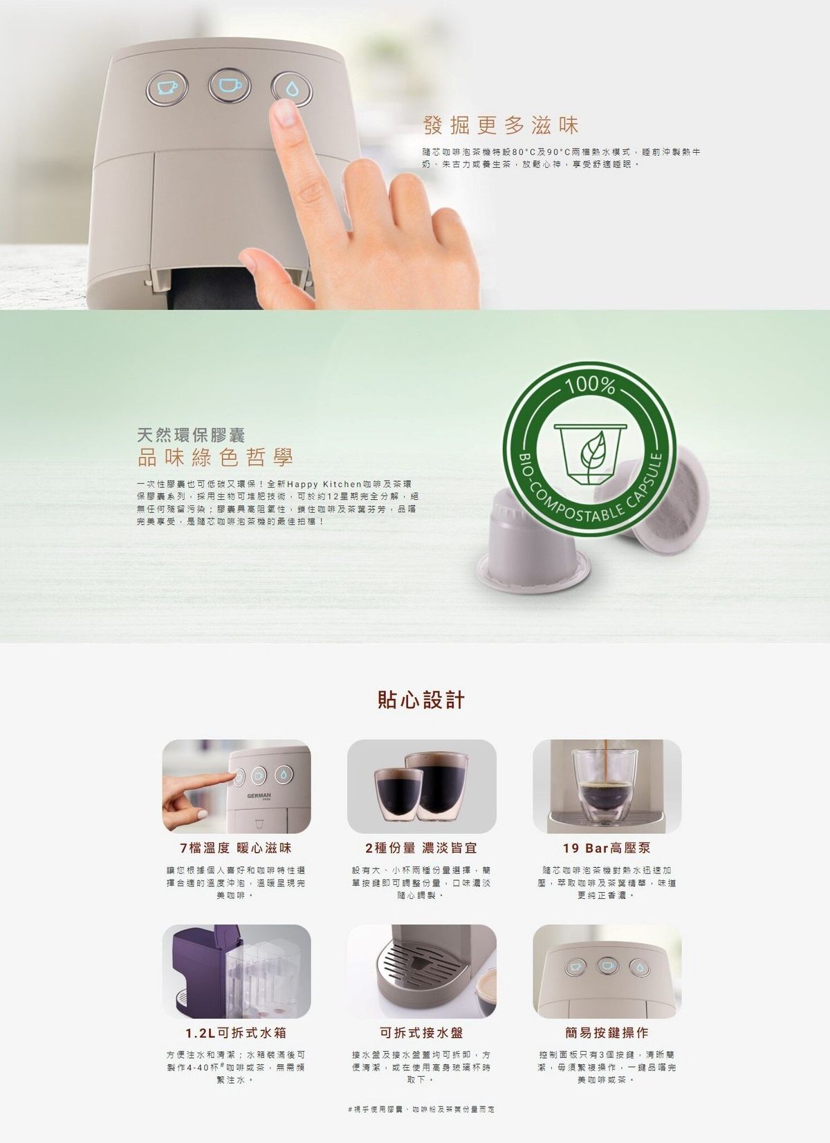 3款膠囊槽,不同品牌膠囊、咖啡粉及茶葉一機適用
